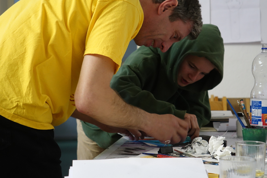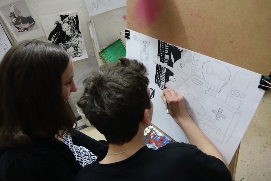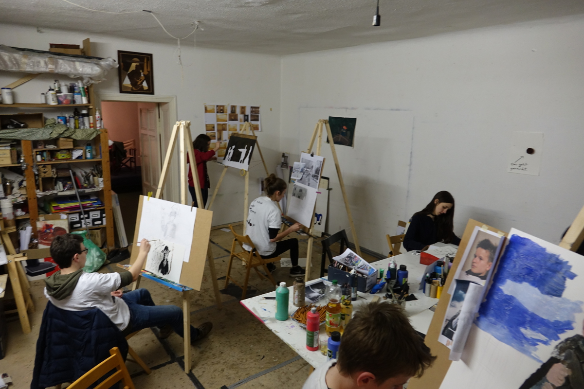 Henrik Schrat und Jan Brokof unterstützen die Jugendlichen, zeigen ihnen klassische und aktuelle Techniken (Kohle, Kreide, Aquarell, Acryl uvm.) und geben professionelle Rückmeldung. Das Ziel ist, sich bildnerische Mittel anzueignen um eigene Ideen entwickeln zu lernen. Dabei ist vom naturalistischen Zeichnen zu Comic und Manga vieles möglich. Klassischen Malerei oder Arthacks – technische Tricks – alles im Angebot. Die Welt der Bilder eben.