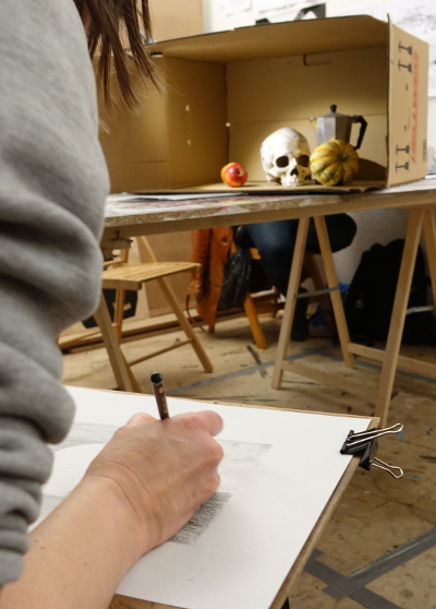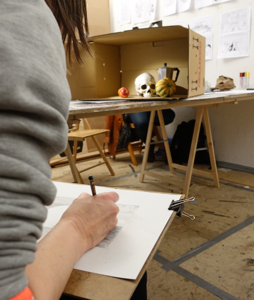 Die Kunstkurse am Wochenende schlagen ein Rahmenthema vor, in dem Ihr Euch bewegen könnt. Aber Ihr könnt auch an eigenen, anderen Projekten betreut arbeiten, ich freue mich immer über mitgebrachte Ideen und Arbeitsansätze. Die Atmosphäre im Atelier ist entspannt, Materialien, Vorlagen und Ideen sind im Überfluss vorhanden. Alles kann, nichts muss hier. Kreativer Freiraum paart sich mit anspruchsvollem Lernen.
