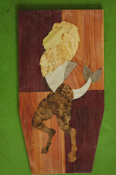 Es hat sich ein großer Materialvorrat angesammelt und Erfahrung, wie man das umsetzt. Das möcht ich gern teilen. Tatsächlich wurde hier bei dem Workshops schon mal spontan Intarsie gemacht, und eine ist hier auch abgebildet (winkewinke!((-; ) .