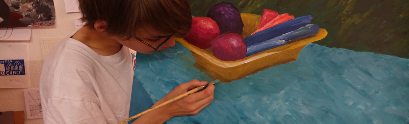 Bilder mitbringen und besprechen, hier an seinen Projekten arbeiten oder gemeinsam Zeichnen, Malen und sich Anregungen holen. Eure Ziele werden für die Kunstkurse besprochen und dann über Vorschläge und Aufgaben erreicht.