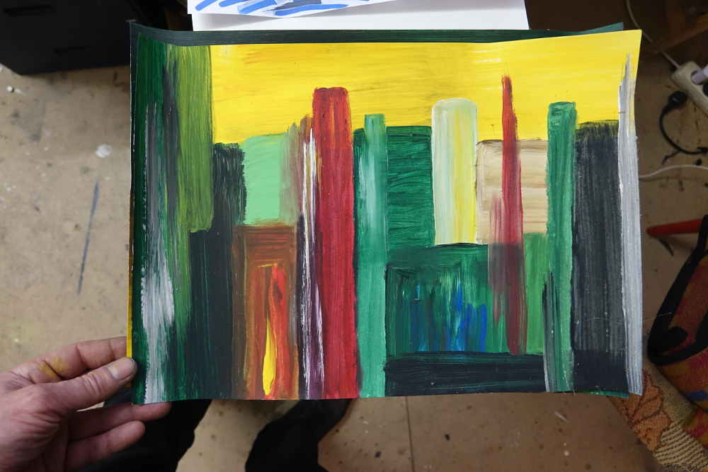 Wir machen als Einstieg ein paar Übungen dazu, das ist immer vergnüglich und bringt die Ideen und bildnerische Vorstellungskraft in Schwung. Es wird so eine kleine Serie an Bildern nach inhaltlichen und formalen Rahmen entstehen. Wer meine Arbeitsmethoden schon kennt, weiß ungefähr, was auf ihn zukommt.
