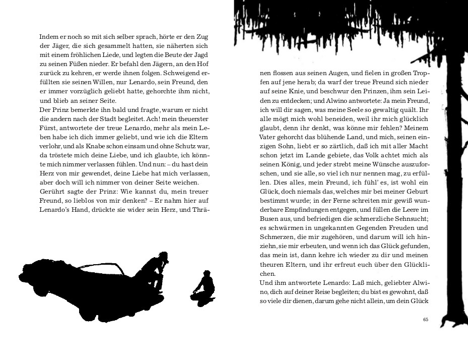 Visuelles Erzählen – Bildgeschichten sind ja mein Spezialgebiet. Im Januar 2018 hatten wir einen Märchenworkshop, der war voll & toll. Da würde ich gern anknüpfen, und das mit einem Angebot verbinden: Es kann was draus entwickelt werden das man reproduzieren kann. Ich hab eine kleine Druckpresse hier, da geht Holzschnitt und ähnliches. Eine Faltkarte, ein Laporello, ein kleines Booklet.